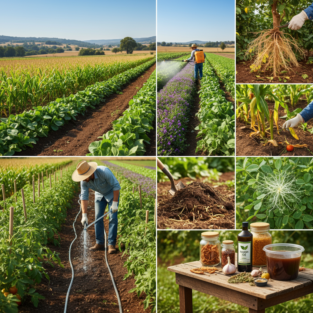تعرّف على أفضل الوصفات المنزلية لتحضير المبيدات العضوية بمواد طبيعية مثل الثوم، الفلفل، زيت النيم، والصابون الزراعي. طرق آمنة وصديقة للبيئة لحماية المحاصيل ودعم الزراعة المستدامة.